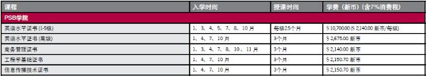 新加坡psb学院一年学费多少——证书课程学费