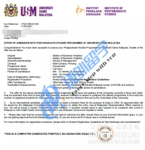 录取结果:马来西亚理科大学商业分析硕士+理工大学MBA