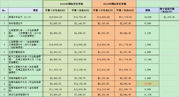 针对2016年入学的学生,新加坡PSB学院将调整部分课程的学费,具体如下:(详情请咨询教外留学老师)